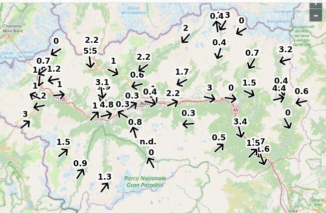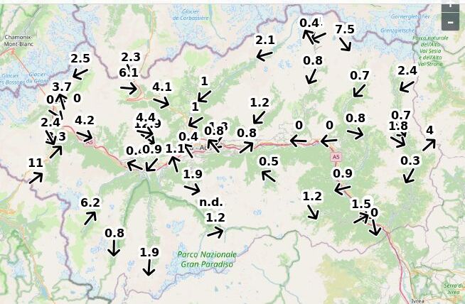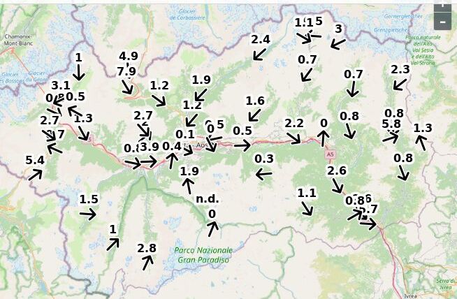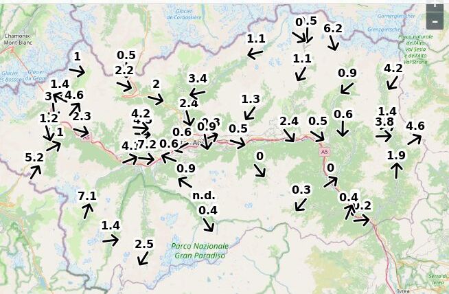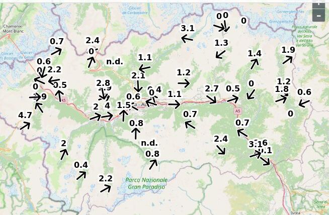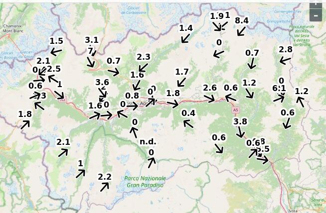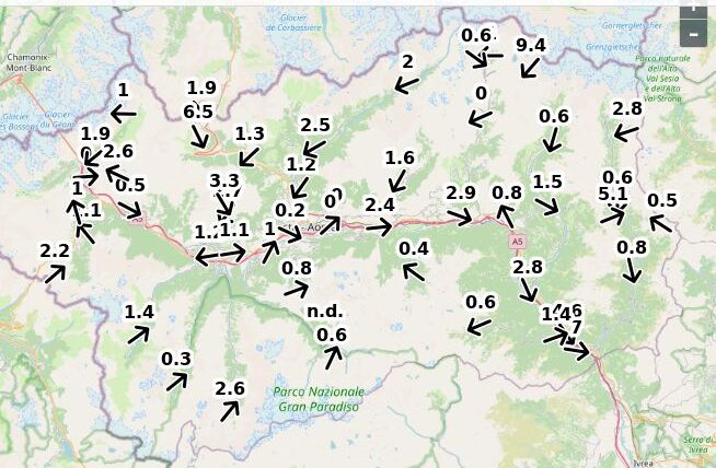 | Velocità vento Aosta: | 0.1-0.7-0.3 m/sec |