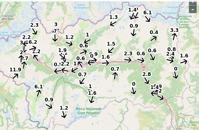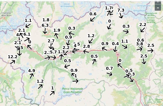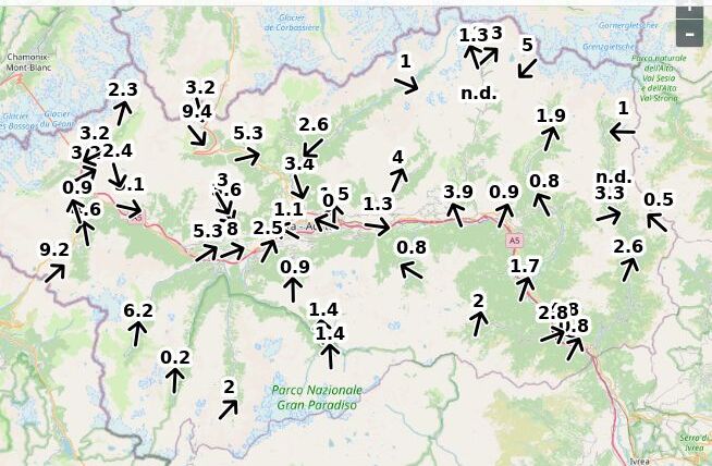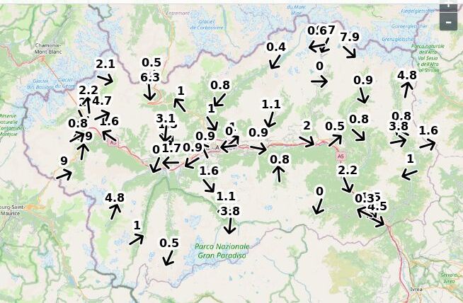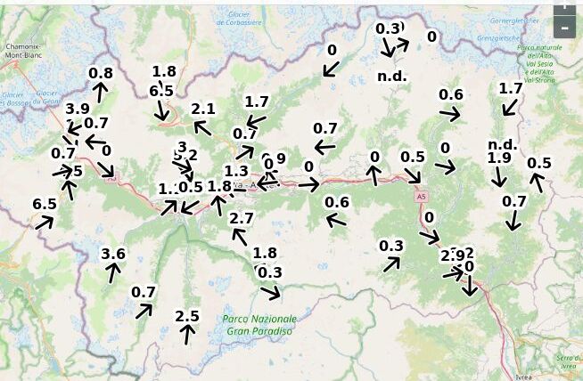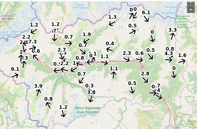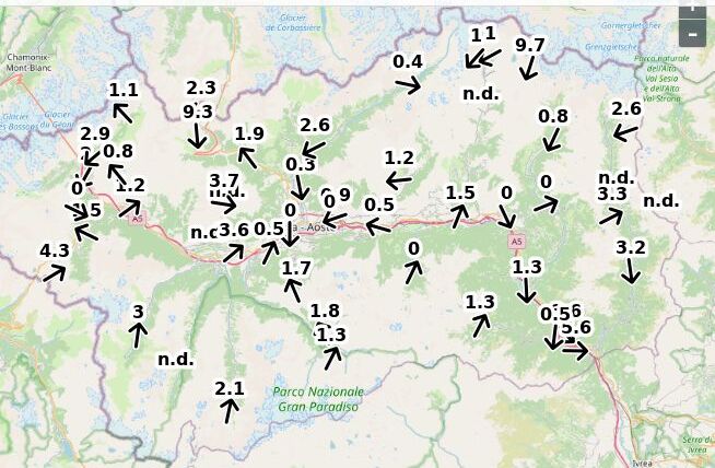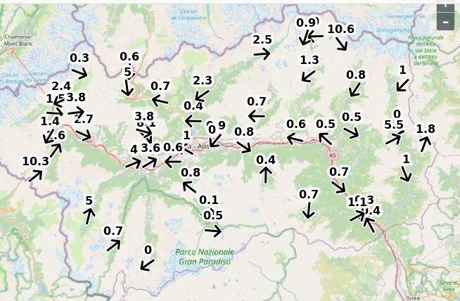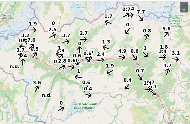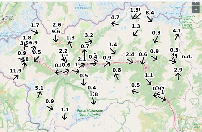 | Velocità vento Aosta: | 1-0.1-0.6 m/sec |