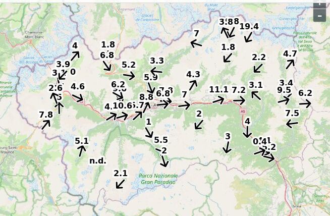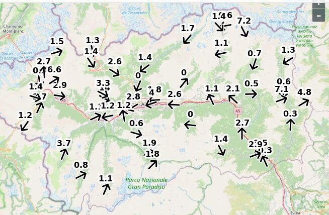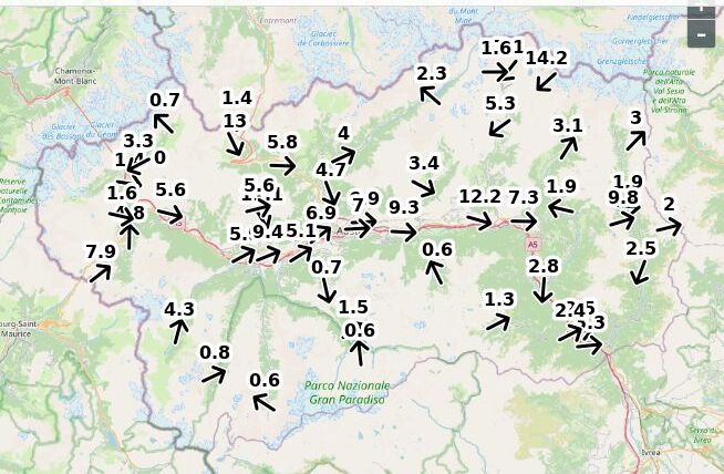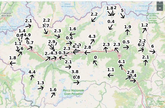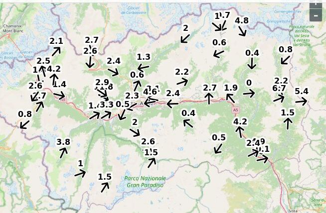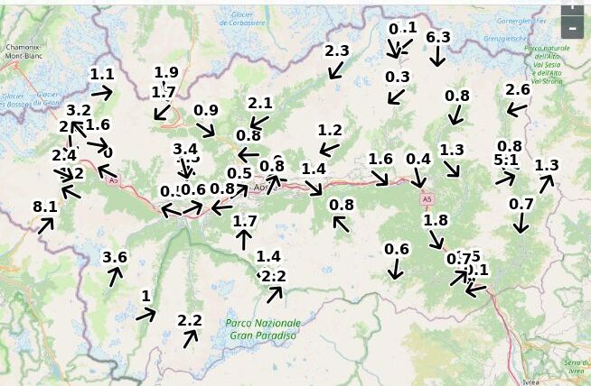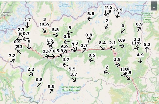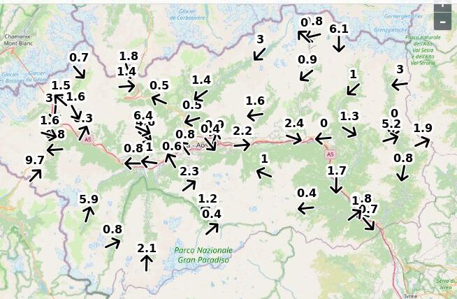 | Velocità vento Aosta: | 3.2-2.5-2 m/sec |