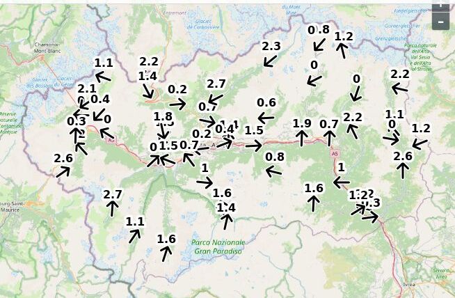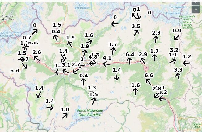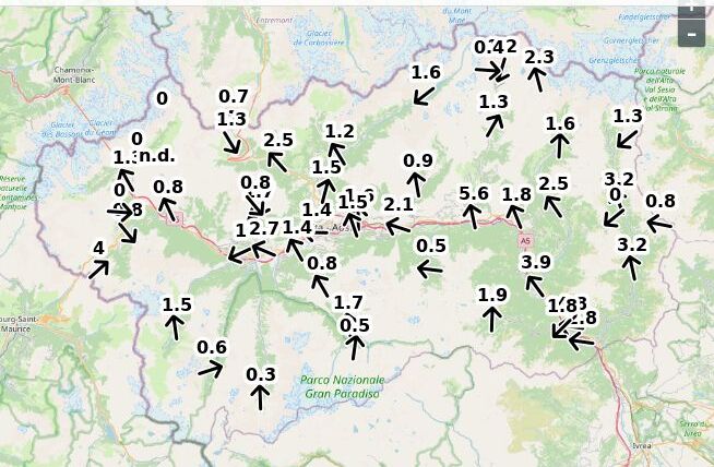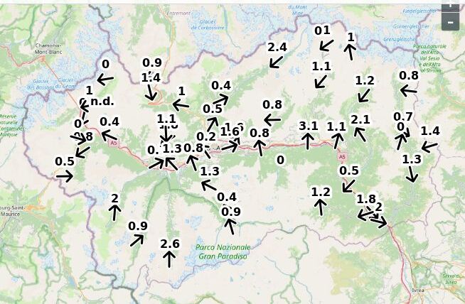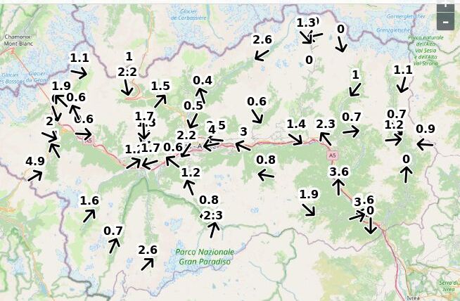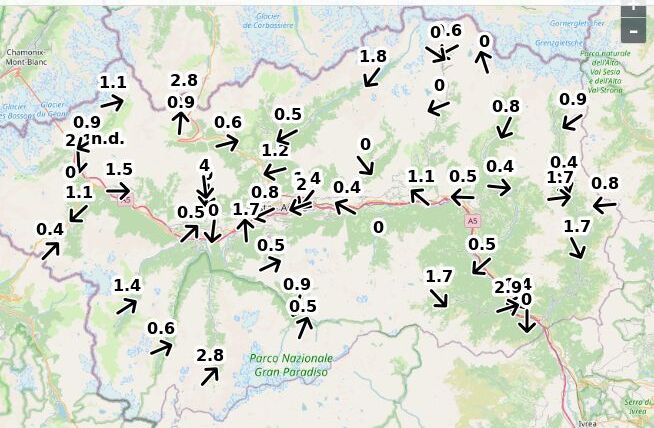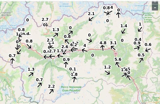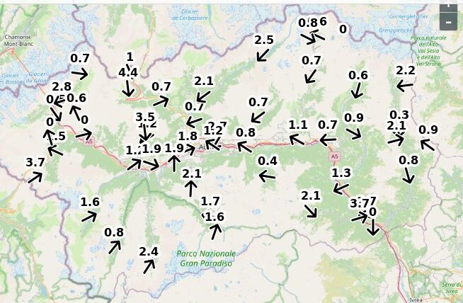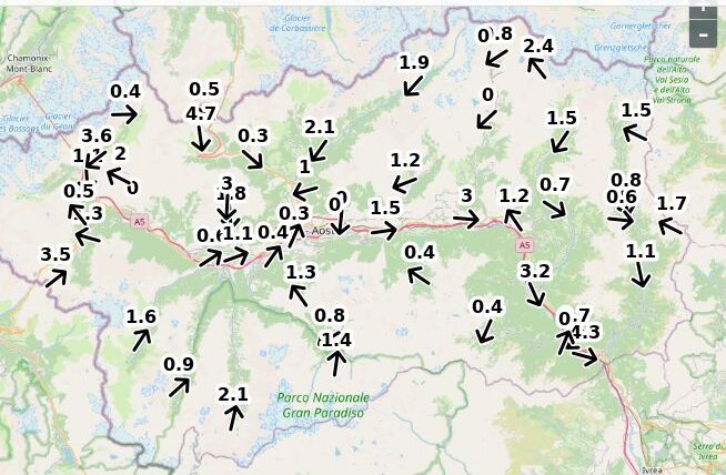 | Velocità vento Aosta: | 2.7-1.8-2.1 m/sec |