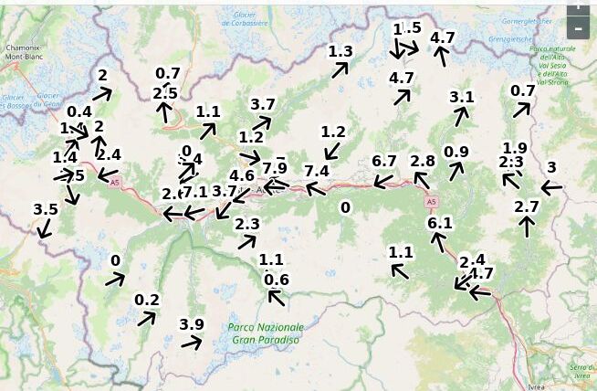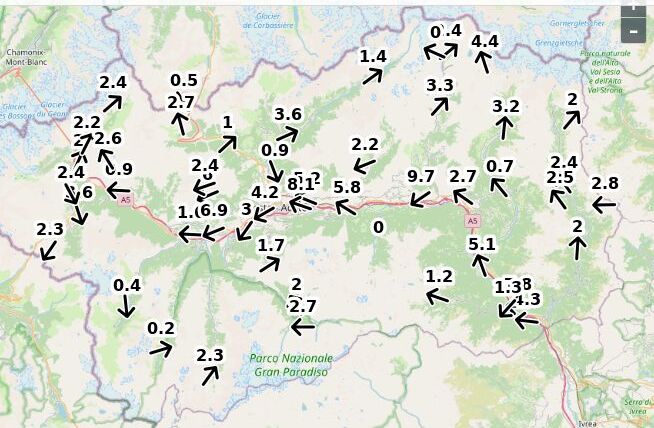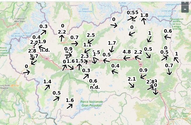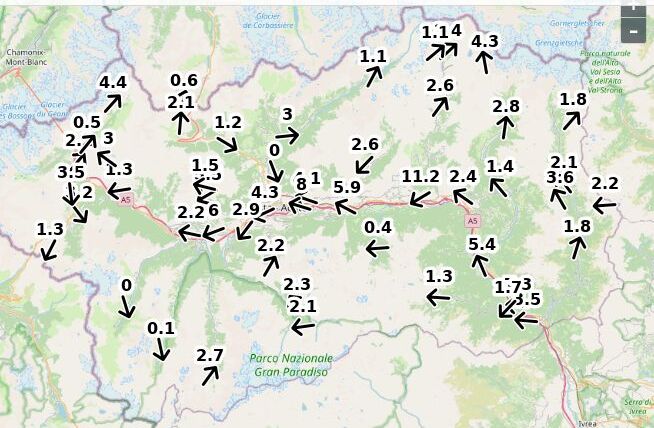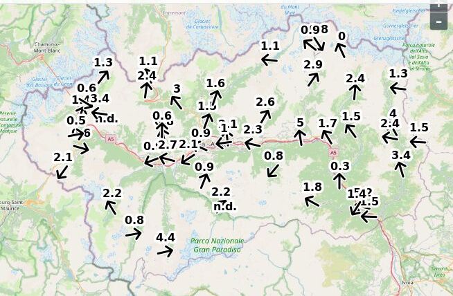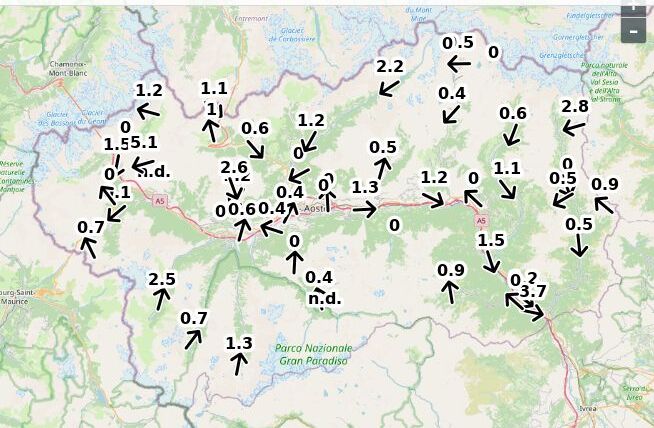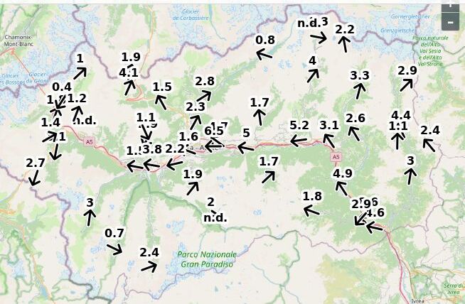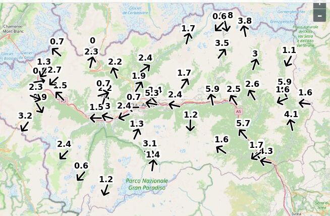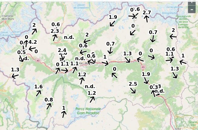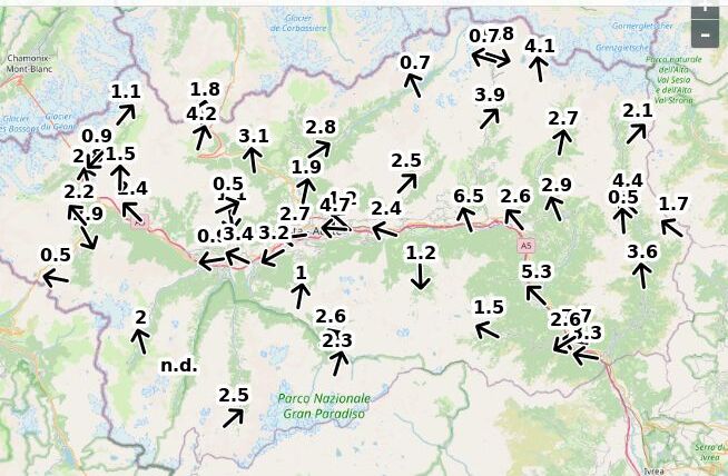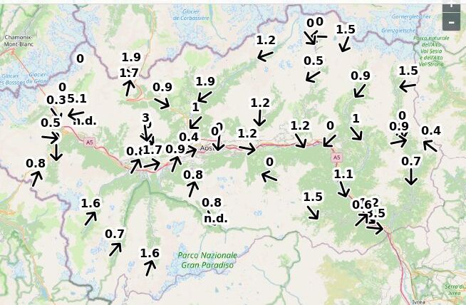 | Velocità vento Aosta: | 4.9-3.9-4.4 m/sec |