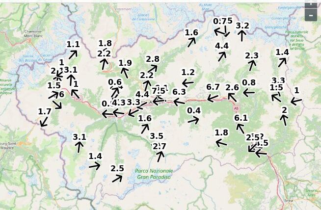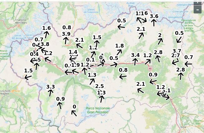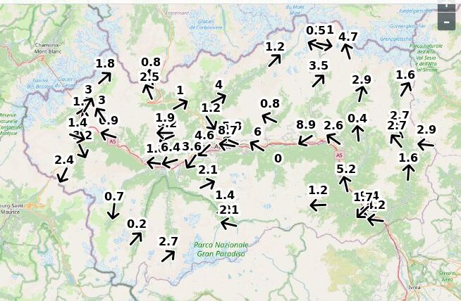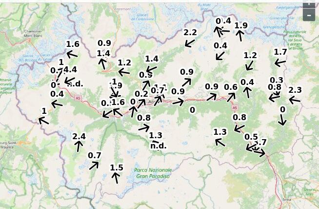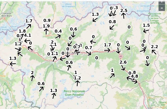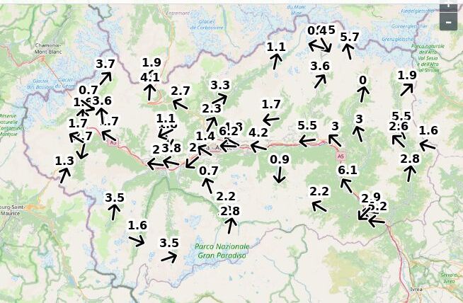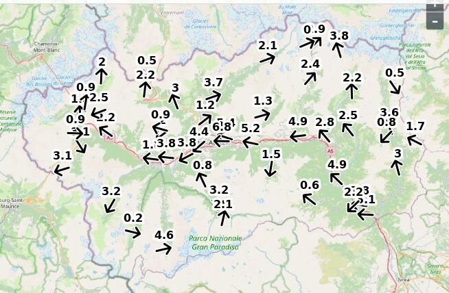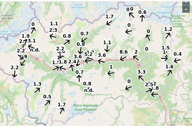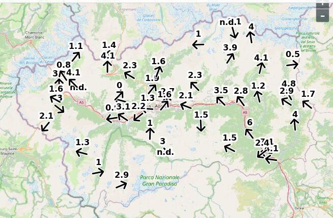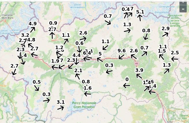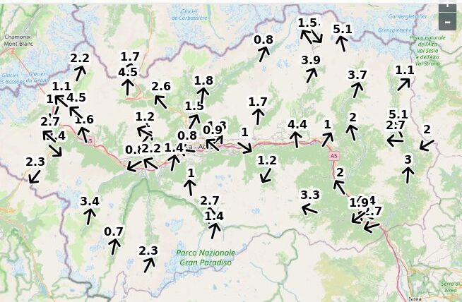 | Velocità vento Aosta: | 4.9-3.9-4.4 m/sec |