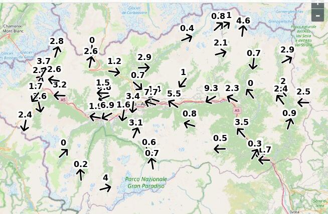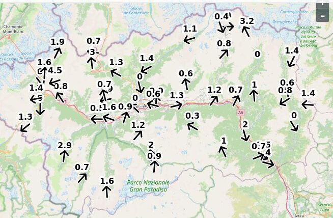 | Direzione vento Aosta: | 63-65-2 Nord ![]() |