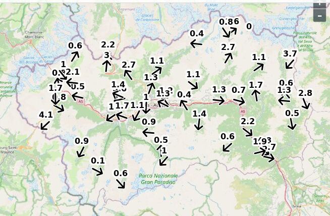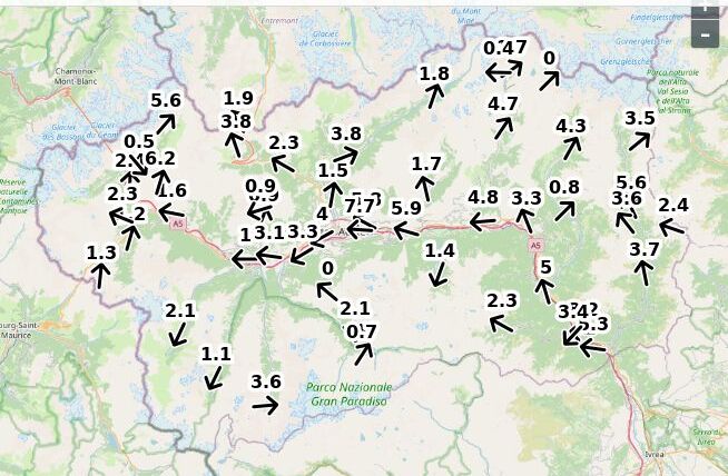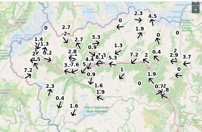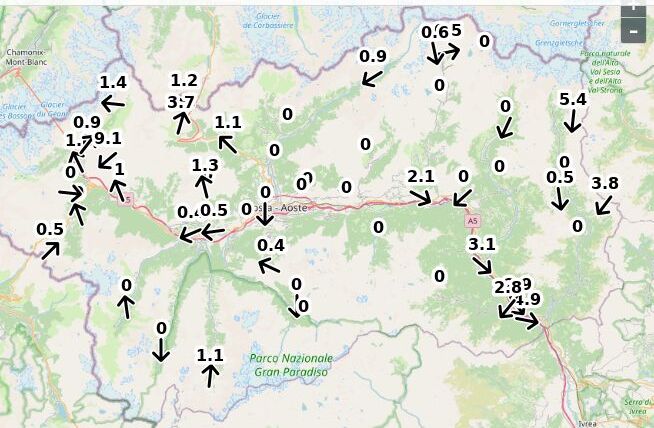 | Velocità vento Aosta: | 0.9-0-0 m/sec |