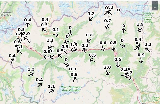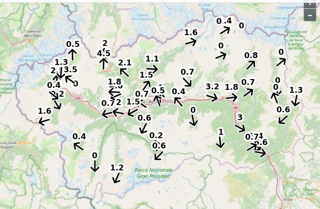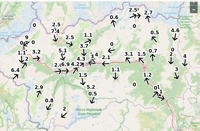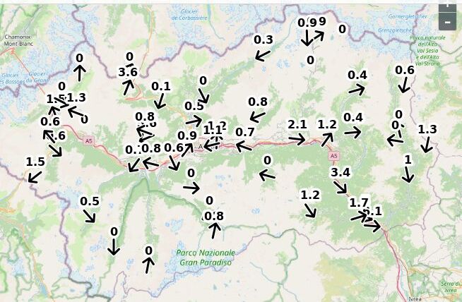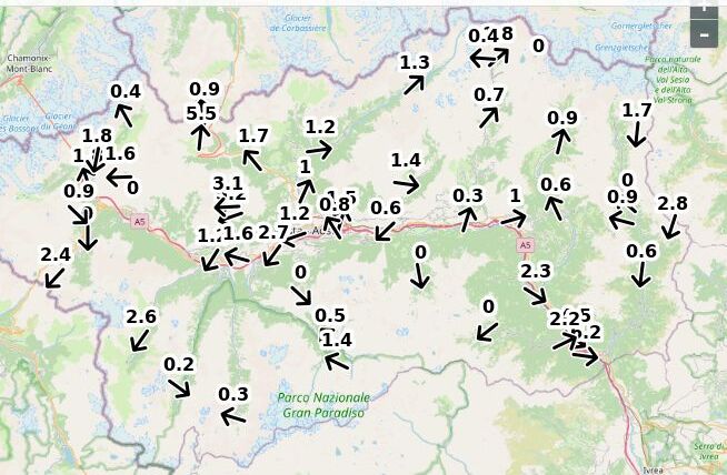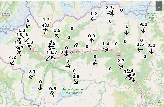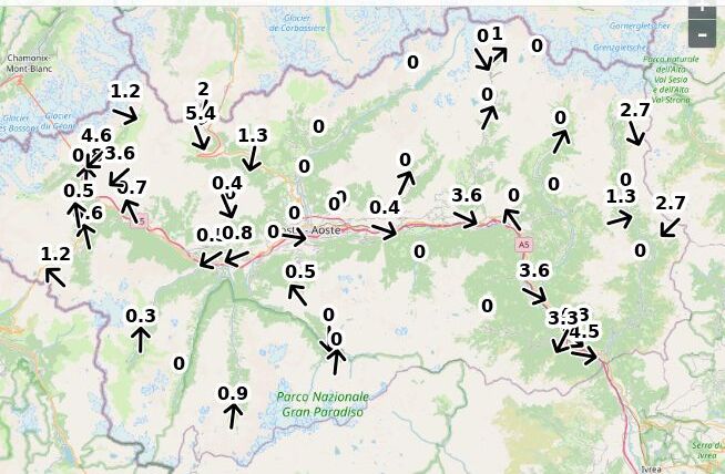 | Direzione vento Aosta: | 270-0-0 Nord ![]() |